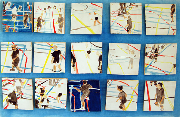Jelle Slof, Volleybal serie 1 12x12CMx15, Olieverf op berkenhout,2016
